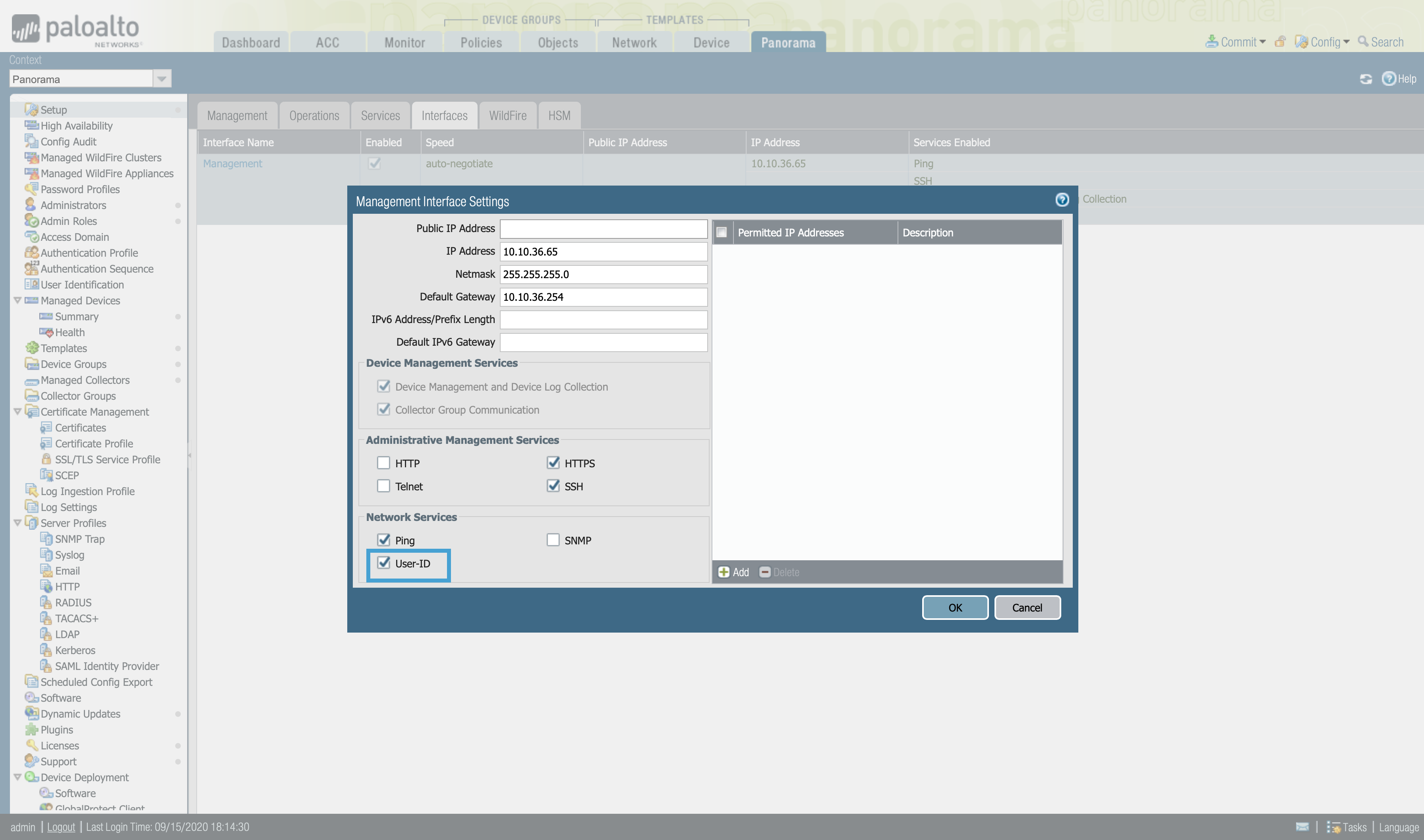 We can also configure the Management interface settings, to configure it to respond to the User-ID information queries.