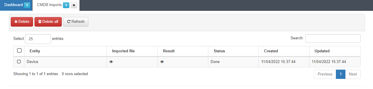 The import process will be initialized, we can see the process in Status -> CMDB Imports.