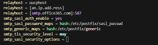 Here we will explain the basic configuration for SMTP Relay, and then Postfix configuration for emailing via Gmail and Office 365. In both cases will use the TCP/587 port.