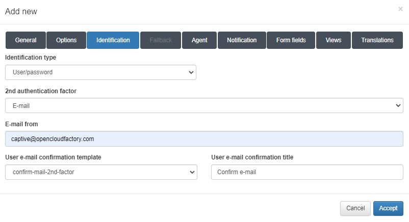 Enable language selector: Enables the language selector in the Captive portal instance. The shown languages depend on the languages configured inside ON Captive -> Captive themes in the General section, with the corresponding translations in the Translations section. If this selector is not enabled, the language will be the browser language.