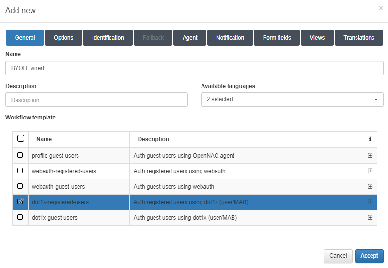 The next policy to configure is BYOD Without Agent. This policy applies to all devices connected via Wi-fi that have passed the BYOD workflow without Agent authentication.